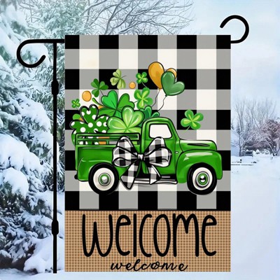 St Patricks Day Garden Flag Outdoor-St Patricks Day Shamrocks Truck Flag Vivid Color Polyester Yard Flags Single Sided 12x18in