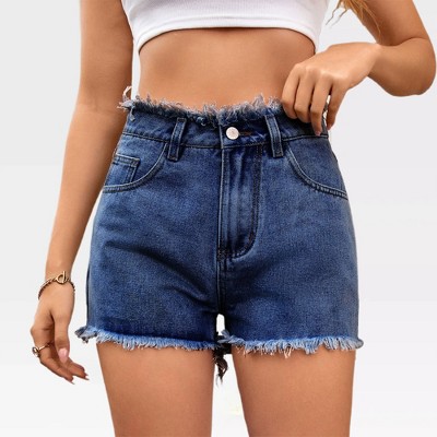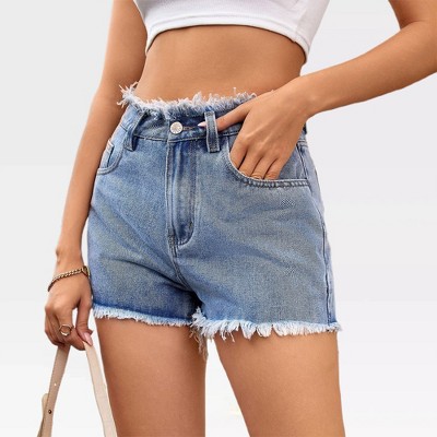Garvee Women's High Waisted Denim Shorts Frayed Raw Hem Ripped Jean Shorts Distressed Summer Stretchy Casual Short Pants Blue