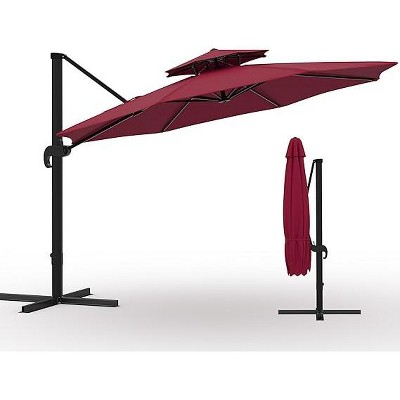 Crestlive Products 11 FT 2-Tier Top Patio Cantilever Umbrella Solar Light Strips Offset Base Not Included