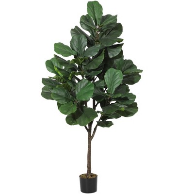 4.9ft Artificial Fiddle Leaf Fig Tree, Faux Silk Plant with Realistic Trunk & Lifelike Green Leaves for Indoor Decor