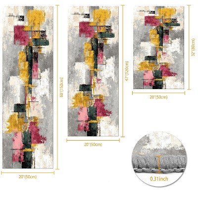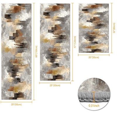 3Pcs Kitchen Rug Set Non-Slip Washable Abstract Soft Mat for Kitchen Bathroom Hallway Laundry Sink Floor