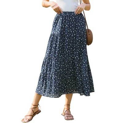 INSPIRE CHIC Women's Boho Floral Summer Elastic Waist Dressy Casual A-line Midi Skirts