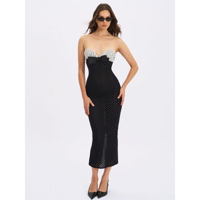 Miss Circle Faith Black and White Polka Dot Sweetheart Maxi Dress
