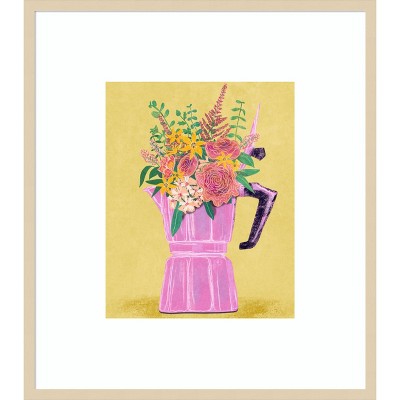Amanti Art Espresso Maker with Flowers by Raissa Oltmanns Wood Framed Wall Art Print