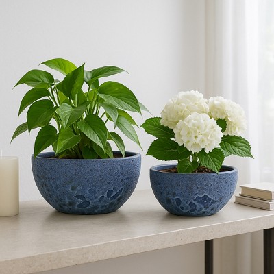 The HC Companies 14 Inch Round Classic Planter - Plastic Plant Pot for Indoor Outdoor Plants Flowers Herbs, Slate Blue