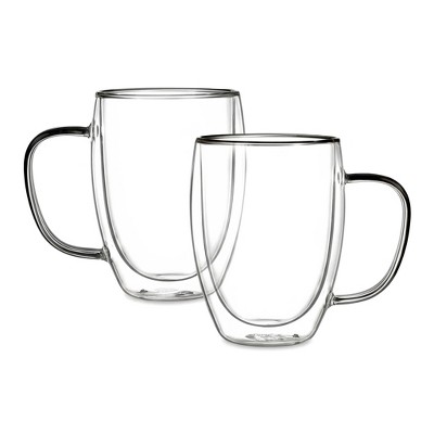 Chery Life 12oz Double Walled Glass Coffee Mugs, Insulated Glass Mugs with Handle, Clear Espresso Cups, 2-Pack