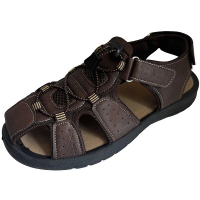 Men's Sandals Brown Fisherman Closed Toe Hook and Loop Bungee Hiking Casual