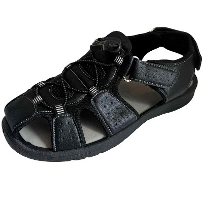 Men's Sandals Black Fisherman Closed Toe Hook and Loop Bungee Hiking Casual