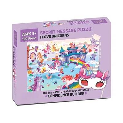NAYSAYE I Love Unicorns 100 Piece Jigsaw Puzzle Hidden Messages Decoder Fun Educational Craft Activity for Kids, Multicolor, 10.5"*8.5"*1.8"