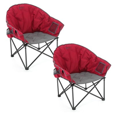 ARROWHEAD OUTDOOR 2-Pack Oversized Heavy-Duty Club Folding Padded Moon Camping Chair with Cup Holder & Carrying Bag, Supports 330 lbs (Burgundy Red)