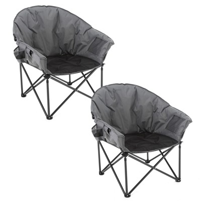 ARROWHEAD OUTDOOR 2-Pack Oversized Heavy-Duty Club Folding Padded Moon Camping Chair with Cup Holder & Carrying Bag, Supports 330 lbs (Charcoal Black)