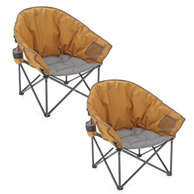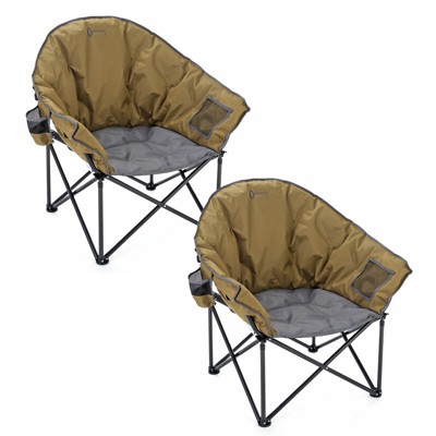 ARROWHEAD OUTDOOR 2-Pack Oversized Heavy-Duty Club Folding Padded Moon Camping Chair with Cup Holder & Carrying Bag, Supports 330 lbs (Wrangler Brown)