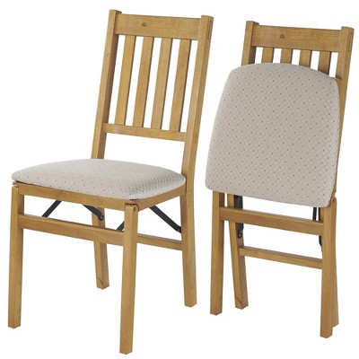 Stackmore Arts and Craft Wood Folding Chairs w Padded Seats, Fruitwood, Set of 2