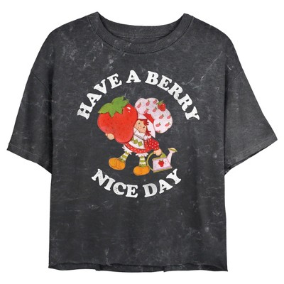Juniors Womens Strawberry Shortcake Berry Nice Day Greeting Mineral Wash Crop T Shirt