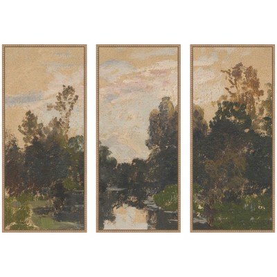Kate and Laurel Landscape by the River Barycz Adolf Dressier 3 Piece Framed Canvas Wall Art Set, 3 Piece Set 18x40
