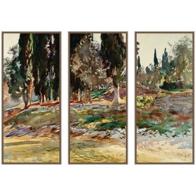 Kate and Laurel Cypress Trees at San Vigilio Lake Garda John Singer Sargent 3 Piece Framed Canvas Wall Art Set, 3 Piece Set 18x40