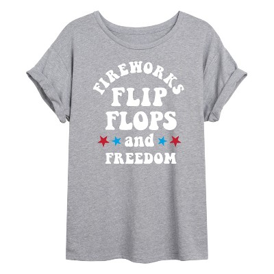 Women's - Instant Message - Fireworks Flip Flops Freedom Oversized Graphic T-Shirt