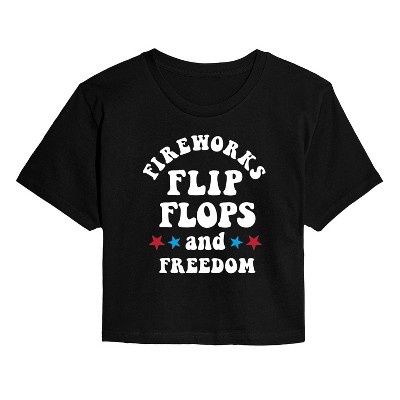 Women's - Instant Message - Fireworks Flip Flops Freedom Cropped Graphic T-Shirt