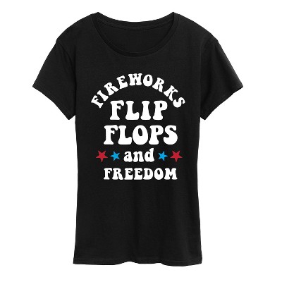 Women's - Instant Message - Fireworks Flip Flops Freedom Short Sleeve Graphic T-Shirt