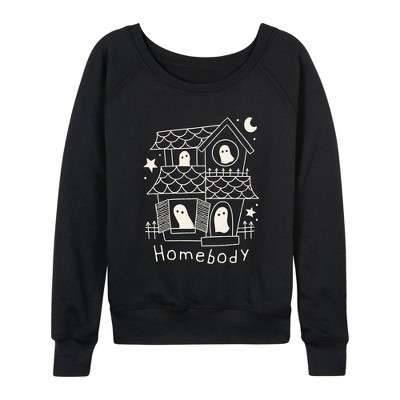 Women's - Instant Message - Homebody Haunted House Lightweight French Terry Wide Neck Long Sleeve Graphic Shirt