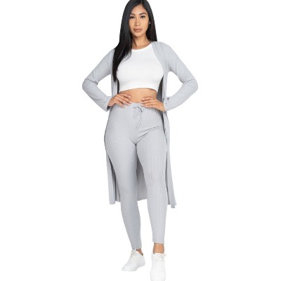Slickblue Women's Ribbed Long Cardigan and Leggings Set, Matching Two-Piece Outfit, Cozy Casual Style, Multiple Colors, S-L