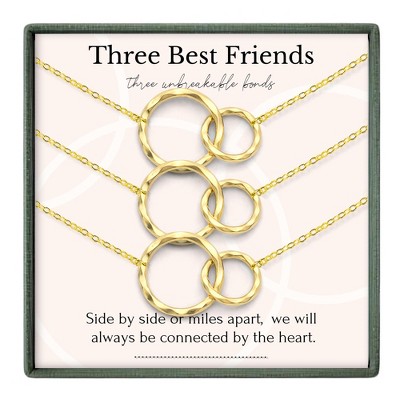 HOPE LOVE SHINE Set of 3 Best Friend Circle Necklaces - BFF Friendship Jewelry Gift for 3 - Gold & Sterling Silver Birthday Set