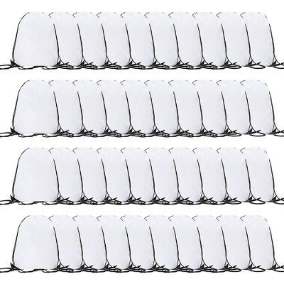 Narwey 40 Pcs Drawstring Backpack Bulk Draw String Bags Cinch Polyester Bag for Gym Sport, White