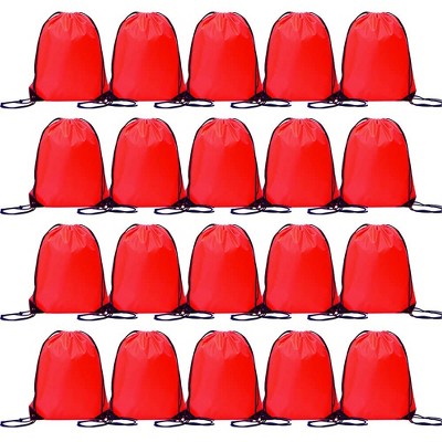 Narwey 20 Pcs Drawstring Backpack Bulk Draw String Bags Cinch Polyester Bag, Red