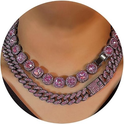 SmallRig Women's 18-20 Inch Zinc Necklace Set, Clustered Diamond Tennis & Heart Chains, Hip Hop Jewelry Gift