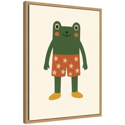 Kate and Laurel Frog in Cowboy Boots by Laura Moss Framed Canvas Wall Art Print, Sylvie Natural, 18x24