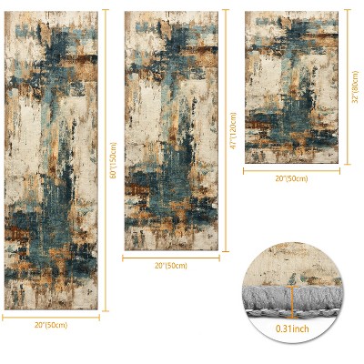 3Pcs Kitchen Rug Set Non-Slip Washable Abstract Soft Mat for Kitchen Bathroom Hallway Laundry Sink Floor