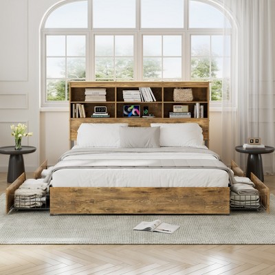 - wooden queen bed frame