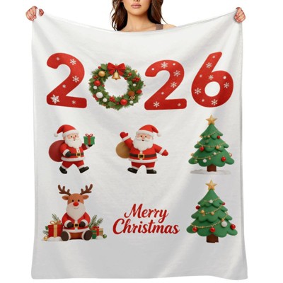 Soscooter 2026 New Year Flannel Blanket Santa Claus Reindeer Pattern Soft Cozy Throw Blanket for Holiday Gift Decor 60x80 inches