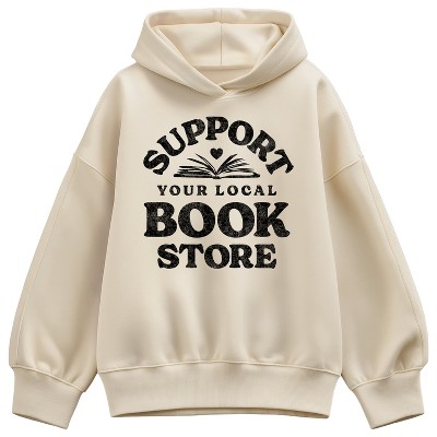 Women's Instant Message Support Your Local Bookstore Oversized Fleece Hoodie Sweatshirt - Cream - Small
