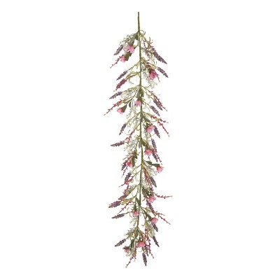 Transpac 61 Inch Multicolor Spring Twig Lavender and Blossom Garland Artificial Plastic Decor for Spring