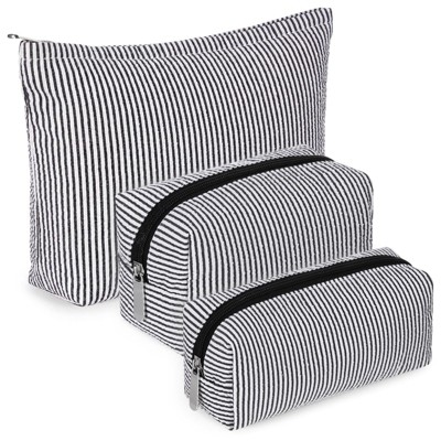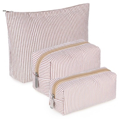 Narwey 3 Pcs Makeup Bag Set Cute Stripe Cosmetic Pouch for Women Aesthetic Seersucker Travel Toiletry Bag