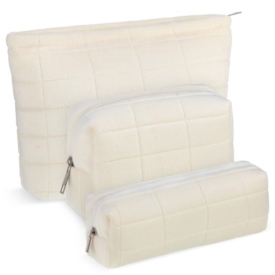 Narwey 3 Pcs Puffy Makeup Bag Set Quilted Plush Emergency Pouch for Women Cute Checkered Travel Toiletry Bag