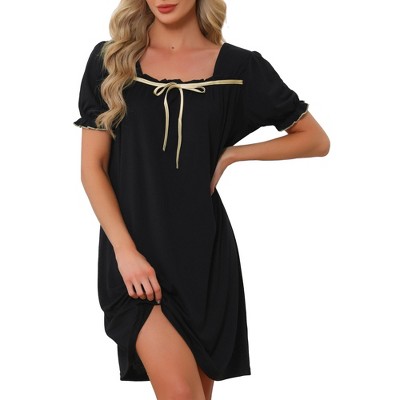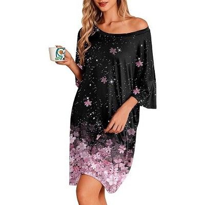 Ekouaer Nightgowns for Women Oversized Sleep Shirt Short Sleeve Nightshirt T-Shirt Dress Sleepwear Black Flower XXL