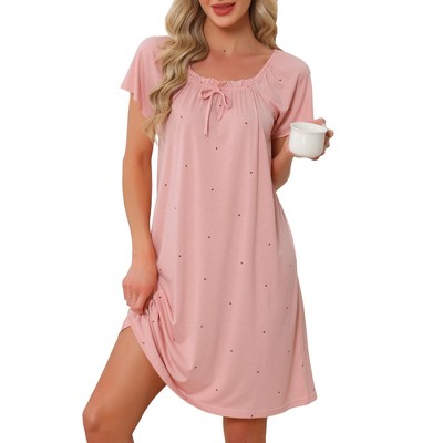 Ekouaer Cotton Nightgowns for Women Lace Trim Sleep Shirts Short Sleeve Night Shirts Sleep Dress with Pockets