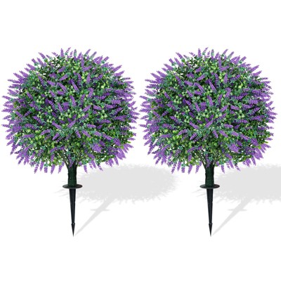 2 Pack 25.59" Artificial Boxwood Topiary Trees, UV Resistant Fake Willow Bushes with Ground Spikes for Outdoor/Indoor Porch & Garden Decor