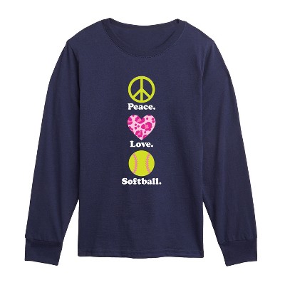 Boys' - Instant Message - Peace, Love, Softball Long Sleeve Graphic T-Shirt