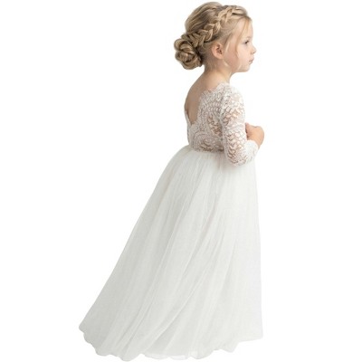 2Bunnies Girls' 12M-12yr Paisley Lace Tulle Long Sleeve Maxi Flower Girl Dress
