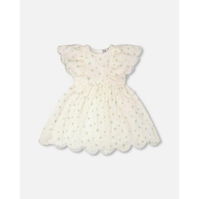 Deux par Deux Girl Viscose Dress White Daffodil Print