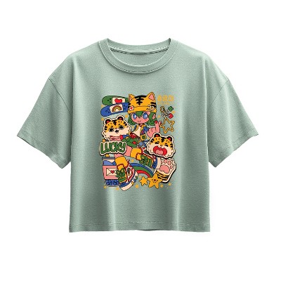 Girls' - Instant Message - Kpop Streetwear Girl Short Sleeve Boxy Graphic T-Shirt