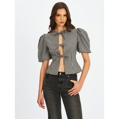 - gingham tie front blouse
