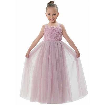 2Bunnies Girls' 12M-4T Floral Embroidered Tulle Strap Knee Dress in Pink Strawberry