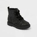 bebe Toddler Girl's Short Lace-up Ankle Combat Boots with Quilted Collar and Heatseal Rhinestones