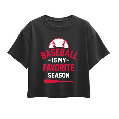 Girls' - Instant Message - Baseball Is My Favorite Season Short Sleeve Boxy Graphic T-Shirt