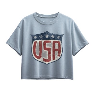Girls' - Instant Message - USA Shield Short Sleeve Boxy Graphic T-Shirt