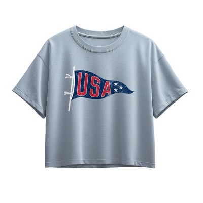 Girls' - Instant Message - USA Pennant Short Sleeve Boxy Graphic T-Shirt